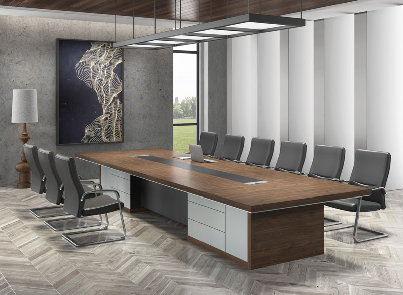 一般來說會議室會議桌的大小尺寸,是要按照會議室的大小、與參會人數(shù)來設(shè)定,但這一般指的是會議桌的輪廓大小,或者說是占地面積,而一個辦公空間是多維度的,除了占地面積和人員占有的水平面大小外,還有著立體高度、部件